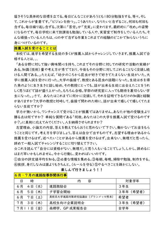 進路通信(7月号) 投稿日時 : 2024/07/25 学校サイト管理者 R6年度の進路通信(7月号)を掲載いたします。 ぜひ御覧ください!画像をクリックすると拡大表示されます。 0 {{options.likeCount}} {{options.likeCount}} {{options.unlikeCount}} {{options.unlikeCount}}