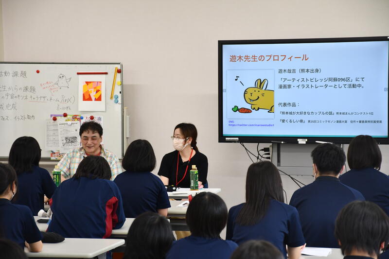 マンガ制作の授業でマンガ家の遊木哉吉先生に来て頂き授業をして頂きました!マンガ制作では毎回、編集者の方やマンガ家さんに来て頂き、豪華な授業が行われています!