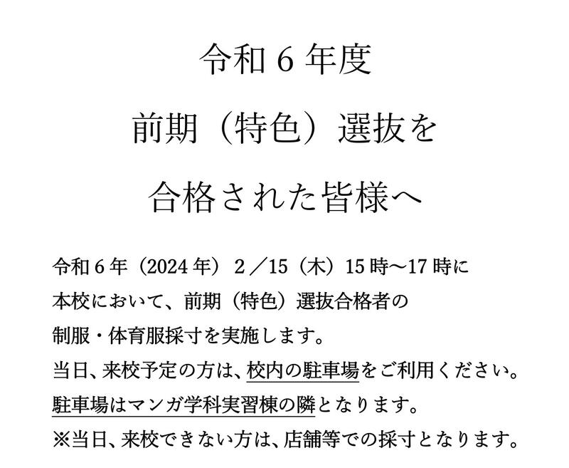 令和6年度 前期(特色)選抜を合格された皆様へ