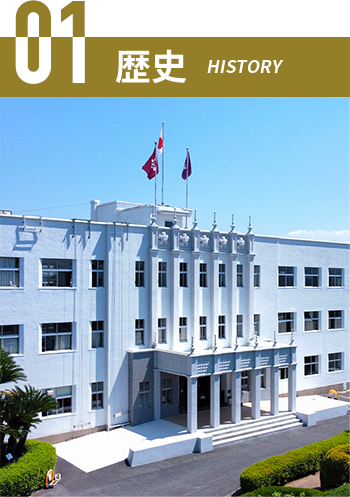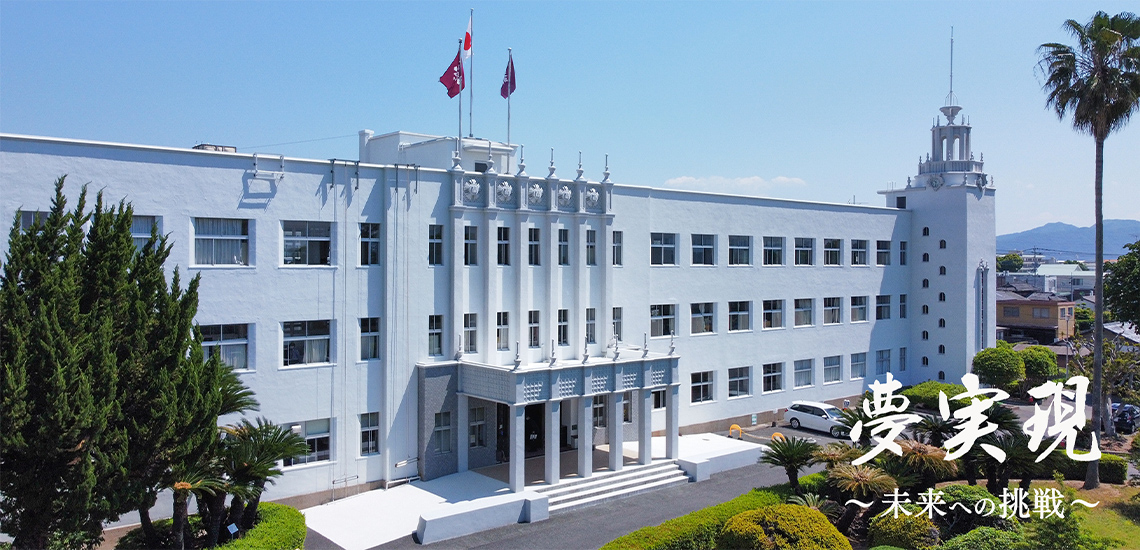 - 「白亜の殿堂」と呼ばれる校舎は、登録有形文化財に指定されており、県内でも珍しいコンクリート建造物です。校舎には「至誠・剛健・進取」という、校訓の理念が込められ、「自由」な校風のもと、さまざまな活動を通して、生徒たちの可能性が開花しています。全定中が同じ学び舎で学習する県内唯一の進学拠点校です。