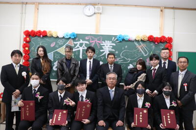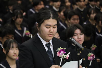 令和7年度玉名高校卒業式が、快晴で爽やかな気候のなかで開催されました。定時制の卒業生5名も晴れやかな笑顔で参加してくれました。式後には4年生教室で最後のHR。担任の荒木先生から卒業証書を手渡しされ、5名が卒業後の抱負などを述べてくれ、感動的な一日でした。卒業生の皆さん、卒業おめでとうございます。皆様の活躍をお祈りしています。