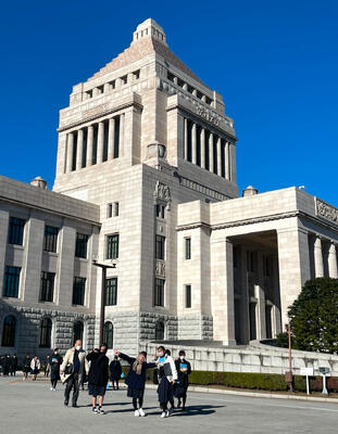 最終日は国会議事堂と皇居外苑を見学しました。教科書やテレビで見ていた場所や建物が目の前にあることに感動しました。天気も良く、青空に建物も映えていました。