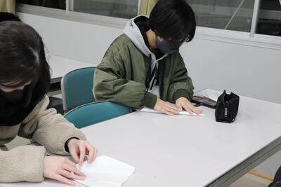 12月22日の生徒交流会では、自作の紙飛行機を作成しました。ネットの情報などを参考にして、より遠くに飛ばせる飛行機を1・2機作成しました。細長い飛行機や切り込みを入れた飛行機など、それぞれに工夫あふれる飛行機が完成しました。実際に飛ばすと、すぐに墜落したりUターンしてマイナス記録になるなど、予想よりも飛ばない飛行機が多い中で、まっすぐ飛んでいく飛行機に歓声が上がっていました。
