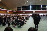 4月9日火曜日、1時限目に対面式が行われました。対面式は生徒会主催の行事です。新入生が最前列に並び、いつもとは異なる整列で緊張感が漂っていました。A組の大木さんが新入生代表として学校行事を楽しみにしていることと、勉学にも部活動にも積極的に取り組んでいく決意を述べました。その後はがらっと変わって、体育祭結団式でした。新入生は高校の先輩方の迫力に圧倒されたようでした。