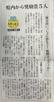 【中】「第16回いっしょに読もう!新聞コンクール」に入賞しました