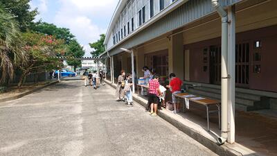正門から教室までの誘導、受付、説明や授業の補助など、中1から中3までの生徒約60名がボランティアとしてサポートをしてくれました。