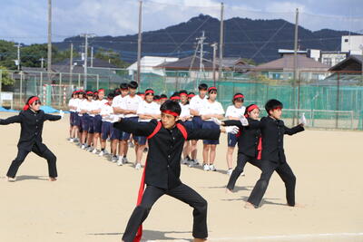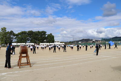 秋空のもと、延期になっていた附属中の体育祭が行われました。