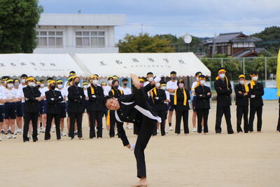 西澤校長より、コロナ下の制限の多かった状況で、この日を迎えられたことについての思いや、各団のテーマについてコメントを交えながらの激励の言葉がありました。