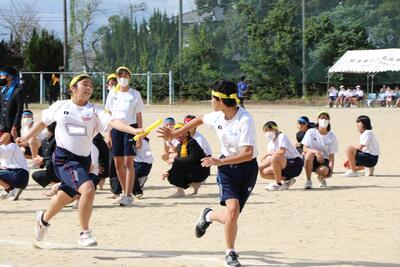 最後の競技は、団対応リレーです。抜きつ抜かれつの接戦が繰り広げられました。