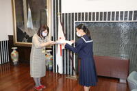 第43回「全日本中学生水の作文コンクール」において、2年生の石渕さんの作品が熊本県賞を受賞し、本日、熊本県環境立県推進課の方が来校され、校長室にて表彰式が行われました。