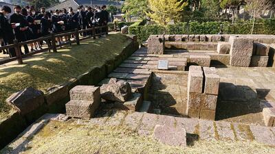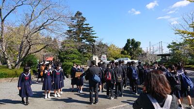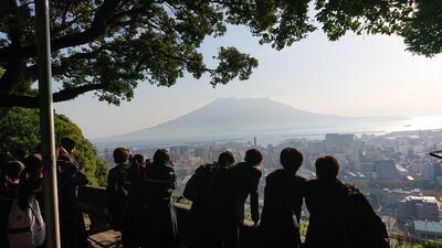 修学旅行2日目は鹿児島市内の城山、磯庭園の見学から始まりました。