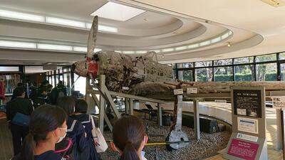 隼や飛燕の機体のほか、隊員の方の遺書や貴重な資料を時間の許す限り、みんな食い入るように静かに見学していました。