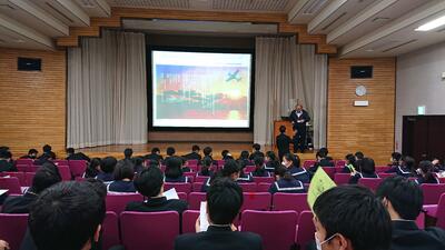全て英語での生徒の活動紹介のスピーチに続き、100%生徒の自主制作による学校紹介の動画を上映しました。