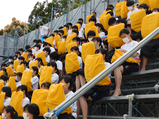 4月19日(水)は体育祭の練習2日目でした。曇り空の下で練習が行われました。2日目でしたが、やぐら長やスタッフが緊張をほぐしていたことや1年生もタオル上げになれてきたこともあり、きれいな文字や模様が作られていました。(生徒会総務部)
