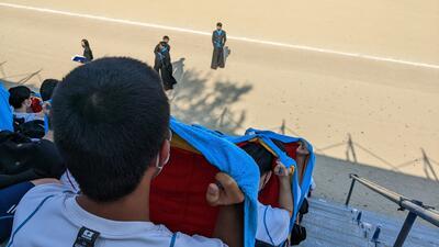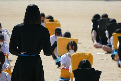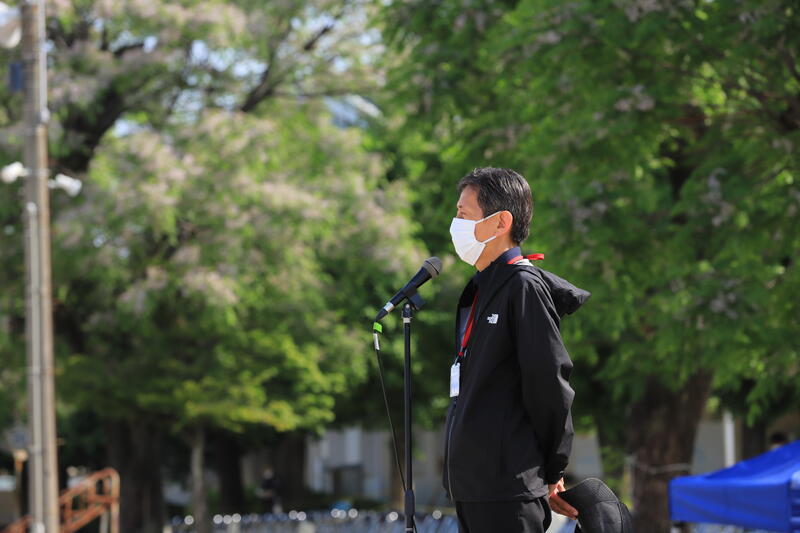 風も強く、砂埃が舞う中の練習でしたが、スタッフが手指消毒を呼びかけたり、リーダーたちも練習の合間に水分補給の休憩をはさんだりと団員の健康に一層気を使っている様子でした。