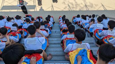 4月22日(土)、今日は本校の育友会総会が行われたため、応援練習が11:20~12:20に行われました。総会に参加された保護者の中には、応援練習を見学されている方もいらっしゃいました。