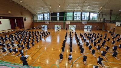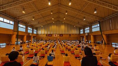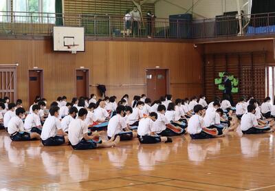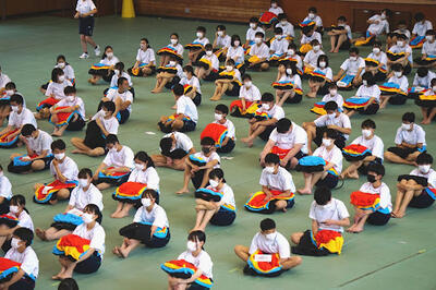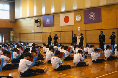 4月14日(金)に体育祭結団式が行われました。各団リーダーを中心に4年ぶりの通常開催に向け、皆、力が入っているようでした。中高応援団の紹介の他、声出し練習やタオル配付等着々と体育祭に向けた準備が行われていました。(生徒会総務部)