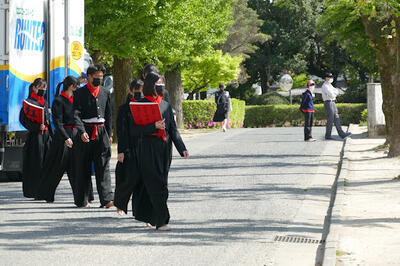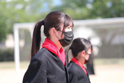 雨が心配されましたが、晴天に恵まれて無事行われ職員も生徒もホッとしているところです。なお、感染対策や熱中症対策を充分に行って練習をしています。