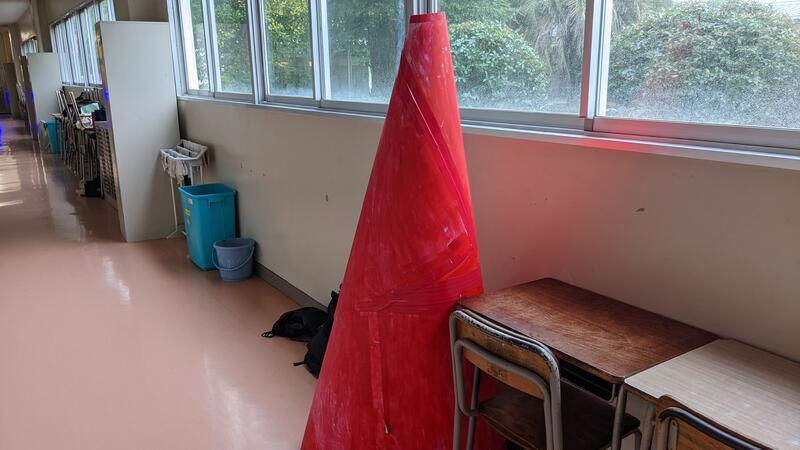 櫓に登らない生徒たちは、花を制作し、櫓の装飾を制作しています。飾り付け完成は当日までのお楽しみです。大看板とともに櫓を華やかにします。(生徒会総務部)