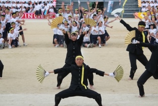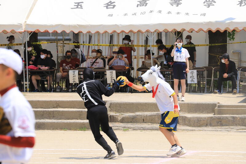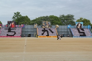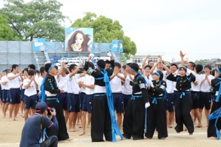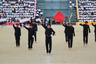 結果は赤団が優勝となりましたが、生徒全員が主役となった体育祭だったと思います。リーダーはもちろん、体育祭企画委員長の阪西さん、看板制作にあたってくれた美術部、原稿準備かつ進行を担当してくれた放送部、開会式等の演奏をしてくれた器楽部、たくさんの生徒の頑張りにより、創立120周年記念第76回玉名高校・玉名高校附属中学校体育祭は成功裏に終わりました。