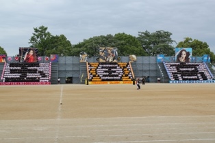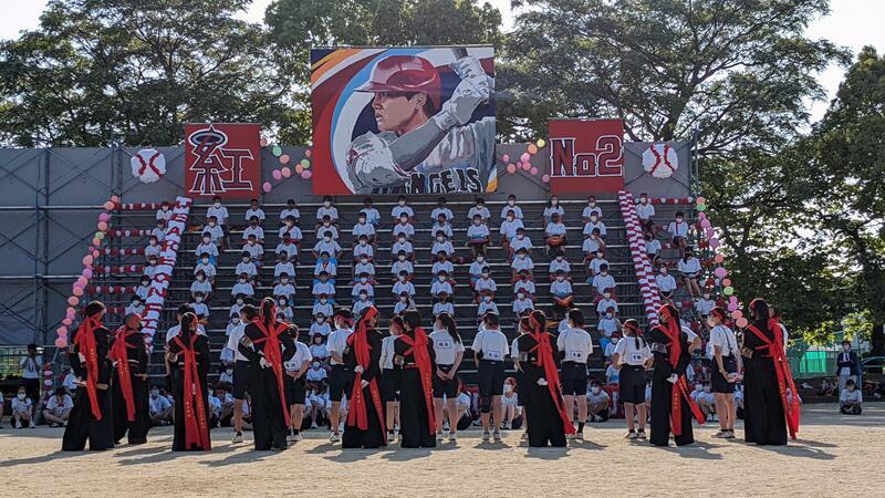 紅団の解団式の様子。櫓の絵はアナハイム・エンゼルスの大谷翔平選手でした。