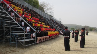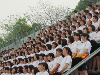 応援練習初日でした。リーダーにとっても団員にとっても緊張が続いた1時間でした。団員の「押忍」の声とリーダーの指示がグラウンドに響いていました。皆、懸命に声を出していてとても良い雰囲気でした。これから、団が1つになって人文字が完成していくのがとても楽しみです。(生徒会 3年)