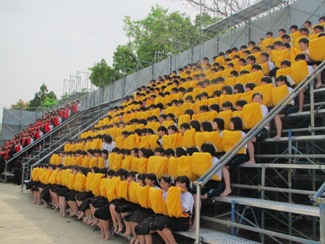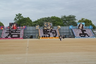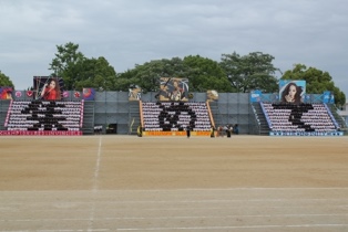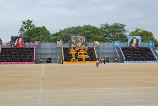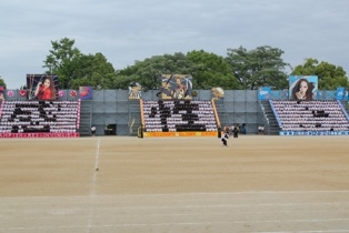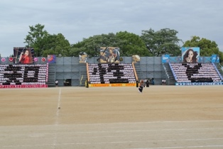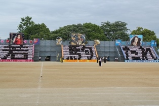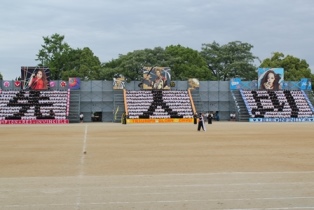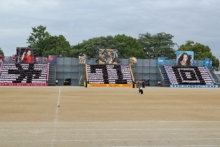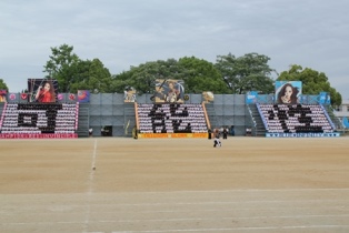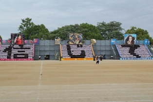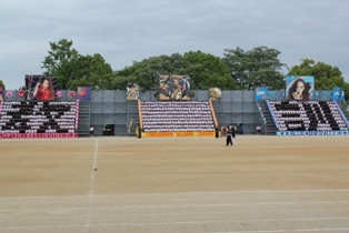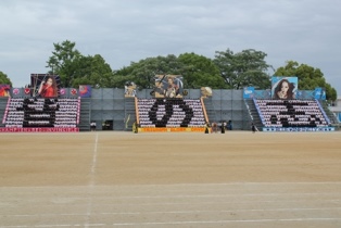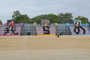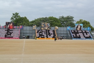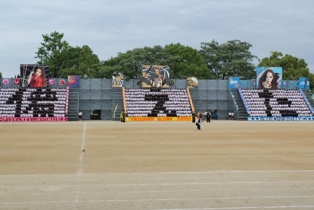 25日(火)は雨でグラウンドの使用ができなかったため、各団室内練習を行いました。動きをつけた人文字練習、太鼓やリーダーたちの演舞に合わせてタオルを上げる練習が主だったようです。明日は晴れるといいですね。