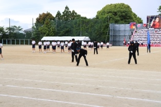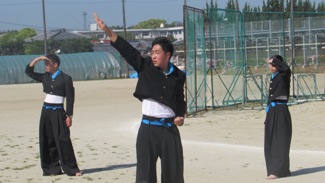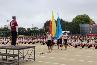 今日は応援1日目でした。1年生は初めてのことで戸惑いもあったと思います。同じ団員の2、3年生が去年の経験をいかして教えていました。声出しではリーダーの指導のもと、団員全員大きな声を出していました。初日から良いスターをと切ることができたと思います。(生徒会 3年)