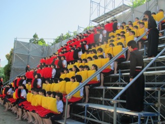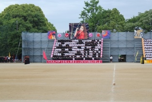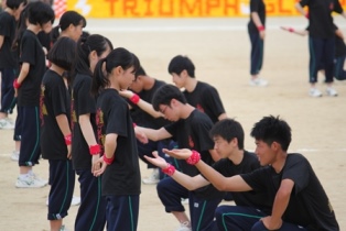5月12日(金)は応援合戦リハーサルを行い各団の応援合戦及び「GOGO玉名」を通して行い、各団で見せあいました。他の団の人文字を見るのは初めてで、刺激になったようです。明日行われる予定だった体育祭は14日の日曜日に延期されることが決定しました。練習時間が1時間伸びたと思って明日も頑張りましょう!(生徒会総務部)