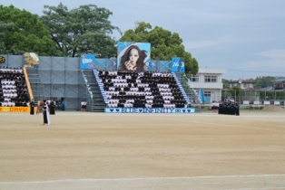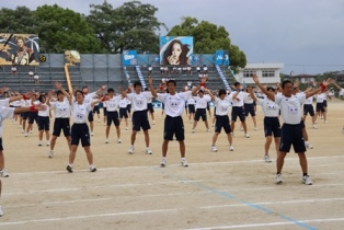今日は初日の応援でした。団員は緊張感をもって練習に励んでいました。特に1年生は緊張していたように見えましたが、みんな真剣に声出しやタオルあげ頑張っていました。充実した応援練習がでいていたので良かったと思います。(生徒会 3年)