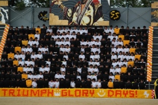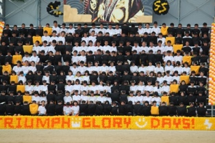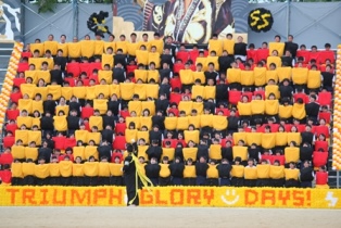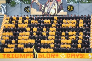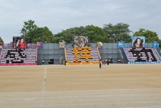 応援リーダー達の声が響く中、団員たちも着実に練習を重ね、タオル上げの動きもだんだんと揃ってくるようになりました。練習の様子を写真でお届けします。