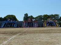 雨天のため1日順延となりましたが、体育祭当日となりました。残念ながらグラウンドの状況が悪く、短縮により各学年の集団演技、技巧競技、中高それぞれの応援合戦のみの開催で非常に悔しい結果となりました。できない競技に参加予定だった生徒たちからは残念そうな声が絶えませんでしたが、限られた時間の中で全力で楽しむことができていたようです。応援合戦ではどの団も約1ヶ月間の集大成を堂々と発表してくれました。ぎゅうぎゅうに並んだ櫓からはこれまでにないほど大きな声が聞こえ、観客の方からは何度も拍手が起こり、熱く盛り上がっていました。