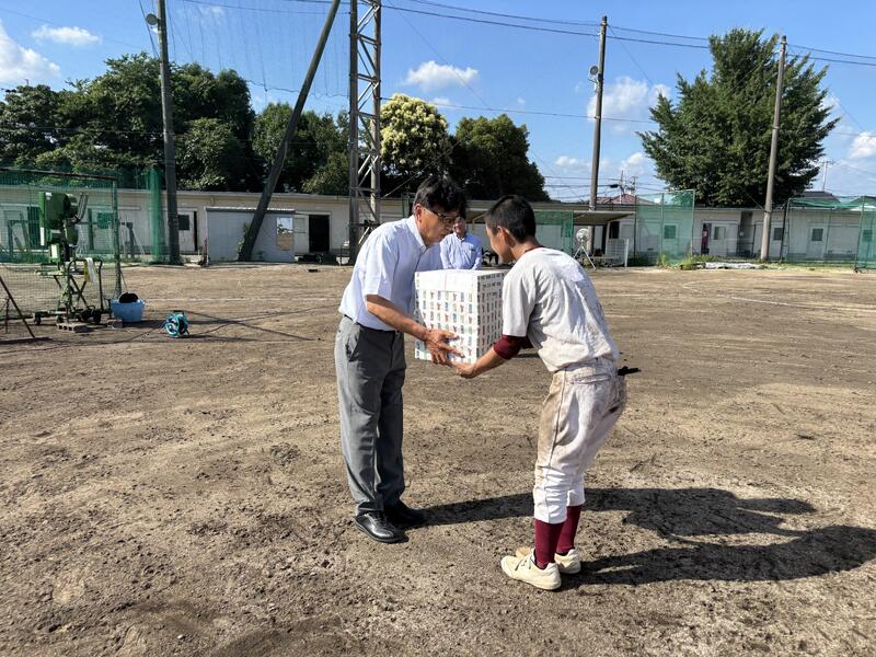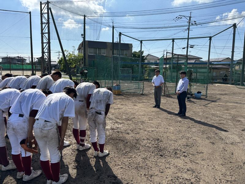 7月5日(金)に玉高野球部OB会野間会長より激励と試合球の贈呈が行われました。
