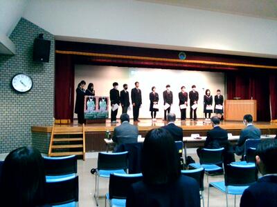 2月18日(日)和水町中央公民館で行われた「第4回菊池川流域高校生サミット」に、本校2年生2名(取組発表)、1年生2名(司会進行)が参加しました。菊池川流域を元気にする取組を、県北の高校生たちが発表するインベントで、参加した9校がそれぞれの取組を発表し、会場の方々と共有しました。本校からは2年生2名が、「地域活性化のために私達ができること」というタイトルで発表を行いました。地域活性化に関する全国の取組を調べ、そのポイントを整理し、それを踏まえて自分たちが企画した取組について発表しました。また、放送部員の1年生2名は司会進行を務め、落ち着いたスムーズな司会ぶりを見せてくれました。参加した4名とも、貴重な体験ができたと思います。お疲れさまでした!