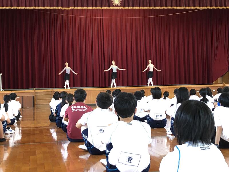 6月10日(金)豊かな創造力・想像力や、思考力、コミュニケーション能力などを養うことを目的に芸術鑑賞会を行いました。貞松・浜田バレエ団をお迎えして、第1部では普段の練習風景や小作品集、第2部では阪神淡路大震災をモチーフにつくられた「セイラーズ・セイリング」第3部では「白鳥の湖」よりハイライトを鑑賞しました。第4部では日本のバレエ「祭」では先日行われたワークショップで御指導いただいた3年生も参加して素晴らしい舞台を見せてくれました。
