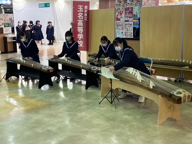 本年度、玉名工業高校・北稜高校・玉名高校3校で取り組んでいる熊本県立学校OneTeamプロジェクト事業「玉名市連携 スタートアップ!玉名・高校生探究ラボ」の一環として、1月20日(土)玉名市にある「カリーノ玉名」でイベントを開催しました。この日はお昼前から北稜高校のワークショップを行い、その後、玉名高校の筝曲部の演奏および音楽部の合唱を披露しました。多くの方が足を止めて生徒たちの発表に耳を傾けていただきました。生徒たちも良い経験になったようです。御覧いただいた皆さまにありがとうございました。また、会場をご提供いただいたカリーノ玉名様、御協力いただきありがとうございました。