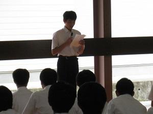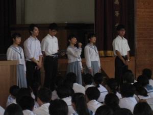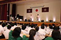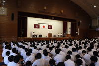 本校では終業式のあとに、学年集会、中学校集会が開かれます。高校1年生の集会は1年3、4組が中心となり運営を行いました。最初に行われた生徒代表挨拶では、教師が伝えたいと思っていたことの多くを生徒が話してくれ、大変感心しました。アイスブレイクでは、野球部員がジェスチャーゲームのデモンストレーションを元気いっぱいに行い、盛り上げてくれました。これから夏休みに入りますが、体験活動などに積極的に参加し、心をたくさん動かしてほしいと思います。