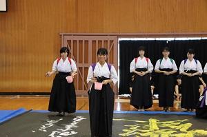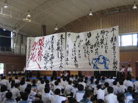 7月24日から南部九州総体が開催されており、玉名市でもレスリング競技が実施されています。昨日開会式が行われ、本校からは書道部や放送係役員の生徒が参加しました。書道部は、開会式の最後に書道パフォーマンスを行い、選手への応援メッセージを作品にしました。また、放送係役員は有志の生徒で参加しています。事前指導のおかげで、立派にアナウンスを務めることができていました。今日も数名の生徒が駅での誘導係として大会運営に参加しています。滅多にない機会を与えていただき、ありがとうございます。