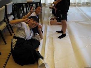 書道部がたいめい苑納涼祭で書道パフォーマンスを行いました。毎年声をかけていただき、生徒達も楽しみにしていました。今年もたくさんの利用者や地域の方に見ていただき大変うれしかったです。素晴らしい機会を与えていただき、ありがとうございました。