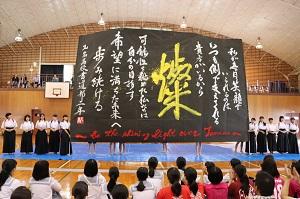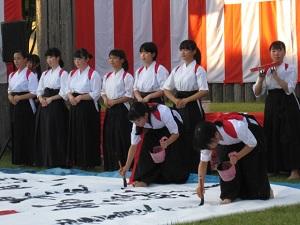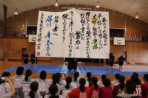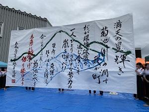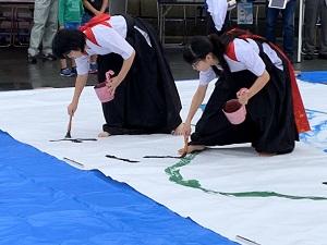 南関町にあるエコアくまもとで行われた「菊池川の日スペシャルinなんかん」で、書道パフォーマンスを披露しました。参加者の皆さまに間近で観覧いただき、大変うれしかったです。生徒達にとってもよい思い出になりました。このような機会を与えていただき、ありがとうございました。