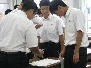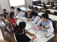 高校1年生は、1月に修学旅行に行きます。今日は、1日自主研修に関する説明を旅行会社の方に行ってもらい、早速班分けに取りかかりました。どのクラスも悩みながらも意見を交換しながら話し合いを進めていました。5組の教室には東京の地図が描かれており、「スカイツリーに行こう!」など会話が盛り上がっていました。ちなみに集会の進行は2組・4組の担当で、修学旅行に臨む姿勢などを確認してくれました。頼もしいです。