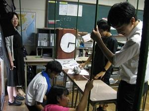 選考は筆記競技及び実技競技で行われ、本校は科学同好会と有志の生徒の1、2年混合チームでエントリーしました。練習時からよく対話のできるチームで、筆記競技はいつもどおりにたくさん話しながら解くことができました。実技競技は事前公開されましたが、本校は期末考査中で全員で取り組めたのは3日間でした。しかし、ピンチをチャンスに変えて集中して取り組み、よい結果を残すことができました。