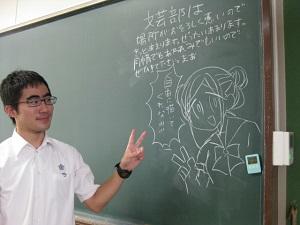 今日は本校を会場にして、中学生及びその保護者・引率教職員を対象に「玉高一日体験入学」を実施しました。今年の説明会は書道パフォーマンスで始まり、西澤校長先生からの「県北の進学校として伝統ある本校で、文武両道、生徒主体の充実した高校生活を送ってみては」と歓迎のメッセージのあと、生徒会によるスライド、玉高○×クイズと趣向を凝らした学校紹介が続き、教務部、進路指導部、定時制の説明を行いました。暑い中でしたが、参加の中学生や保護者の皆さん、引率の先生方に熱心に聞いていただきました。