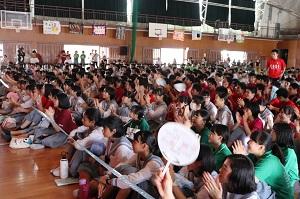 一般客も大勢いる中、満員の観覧席に座り、大迫力の演技に生徒たちも引き込まれていました。