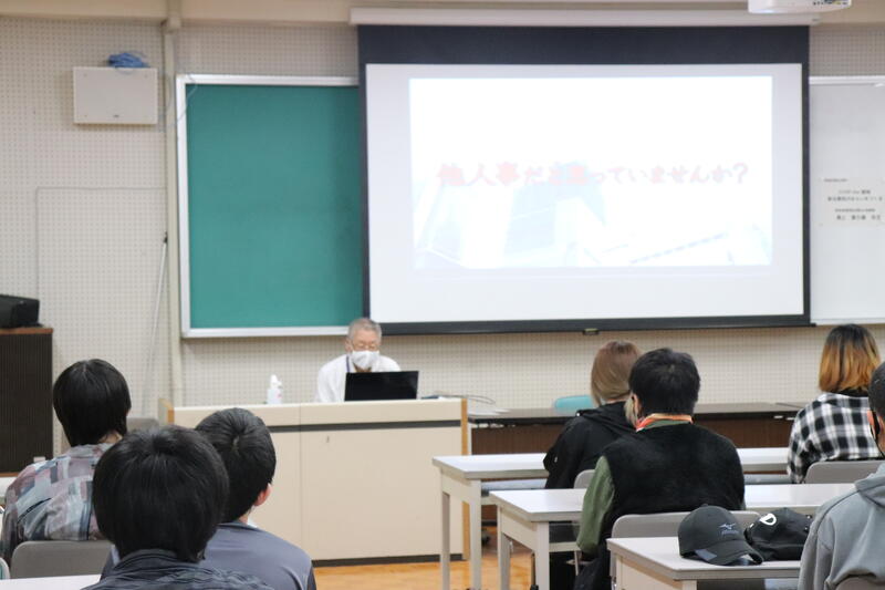 本日は、視聴覚教室で薬物乱用防止教室が行われました。「STOP the 薬物! 断る勇気が未来をつくる」をテーマに、講師の薬物乱用防止指導員の溝上喜久隆先生から近年の傾向や薬物の正しい知識、また断る勇気の大切さを学びました。最後に、アンケートや感想文を記入しました。