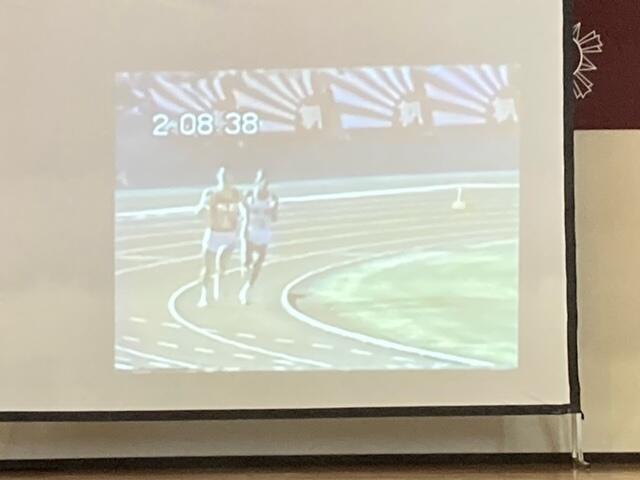 東京オリンピックにまつわる話から現役時代や指導者時代の話題、そして、箱根駅伝や中高生に求めること、成長するために必要なことなど幅広い内容の講演でした。ユーモアを交えながらもレースに向かう姿勢や練習時に気を付けることなど示唆に富んだ心に残るものでした。講演会の後は、オープンディスカッションが行われ、中高生から多くの質問が寄せられ、瀬古さんは一つ一つ丁寧に答えていただきました。最後は瀬古さんの色紙やサイン入りのTシャツが当たる抽選会が行われ、参加した約110名の中高生は大満足の1日だったことと思います。