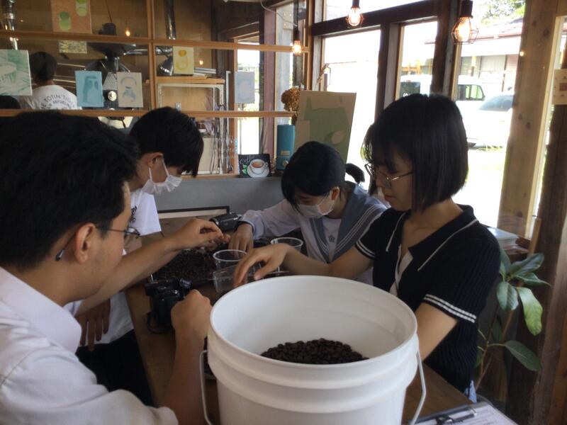 以前、このブログで紹介しました玉名高校生徒会コーヒー班は本校創立120周年を記念する玉高オリジナルコーヒーの製造を進めています。8月8日に植木町のカーメストコーヒーショップさんで焙煎作業を行ってきました。暑い中、コーヒーの生豆70kgを約9時間かけて焙煎、さらに焙煎した豆から欠点豆を取り除く作業をすべて生徒の手でやり遂げました。今回焙煎した豆でドリップパック約5000個を作ります。