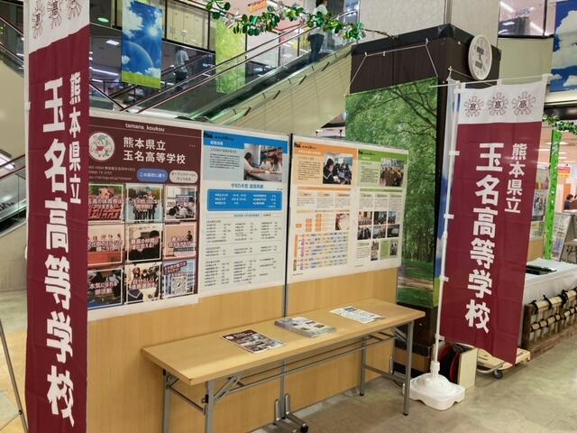 熊本県立学校OneTeamプロジェクト事業の一環として、8月17日(木)からカリーノ玉名イベントスペースにおいて、本校、玉名工業高校、北稜高校の3校合同のPR展を開催しています。本事業は玉名市との連携事業でもあります。また、8月26日(土)には、玉名市民会館会議棟において開催される「玉名地区高校合同進学フェア2023」にも参加します。いずれのイベントも、玉名市の高校を知ることのできる良い機会になると思います。ぜひお立ち寄りください。