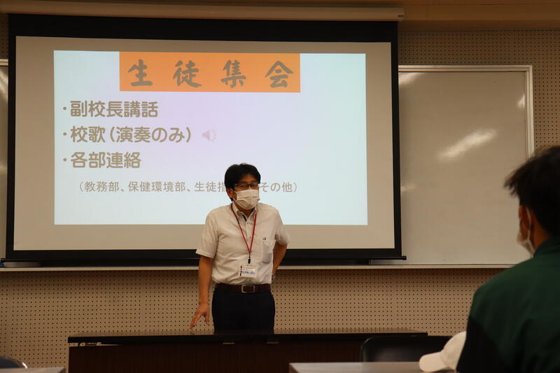 本日は、視聴覚教室で生徒集会が行われました。最初に、全国定通大会結果報告会がありました。その後の集会では、副校長先生が講話の中で、「失敗を恐れずチャレンジすることの大切さ」を生徒たちに語られました。集会後は、諸連絡や生徒会役員による文化祭(若駒祭)の準備についての説明や有志で出場予定生徒の歌唱披露があり、皆で手拍子で盛り上がりました!