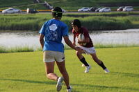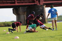 写真は、ラグビー部の練習風景です。ラグビー部は、玉名中学校、荒尾海陽中学校と合同チームで県大会に参加します。
